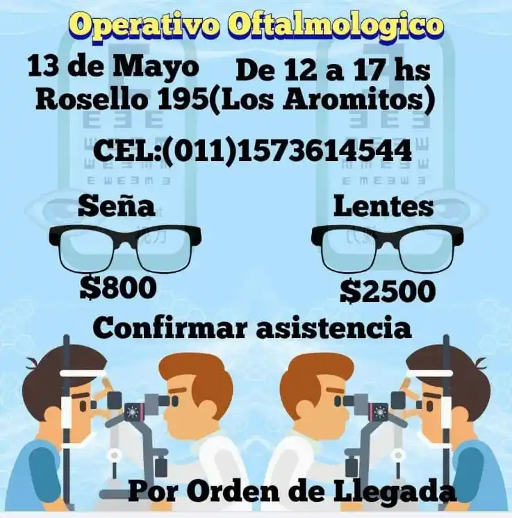 El número de teléfono dispuesto en el anuncio no respondió las consultas de La Opinión. En el volante digital señalan que los lentes cuestan 2500 pesos y que hay que dejar una seña de 800. El contacto telefónico es para confirmar asistencia y la atención por orden de llegada.