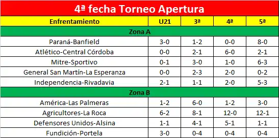 Este domingo en el cierre de la cuarta fecha la I le ganó 2 a 1 a Rivadavia y sigue liderando la tabla de posiciones perseguido por Paraná, que ayer le ganó a Banfield, y el Rojo porque superó al Lobo 2 a 1. General San Martín venció a La Esperanza.
