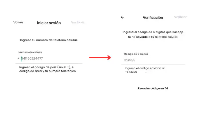 Habiendo completado este paso, seguiremos ingresando nuestro número de celular con el prefijo 54 acompañado del código de área.