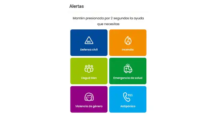 La nueva versión de BasApp presenta seis botones para utilizar dependiendo la situación de emergencia correspondiente y funcionan presionándolos durante dos segundos.
