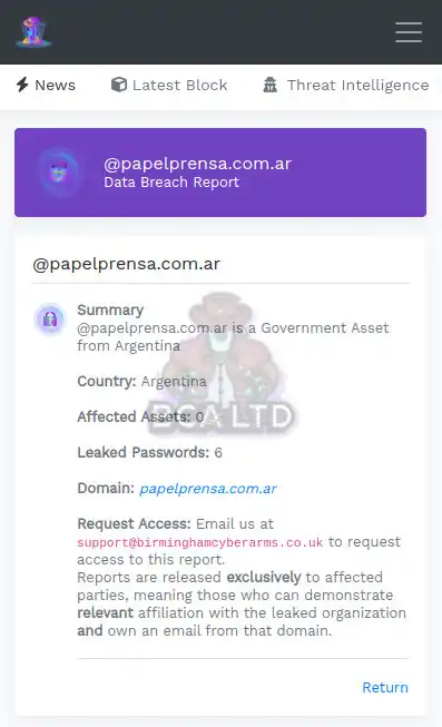 2022: Inteligencia de MeFiltraron / Tero (plataforma abierta de DC5411) detecta la aparición de una filtración donde se exponen credenciales de usuarios de los dominios “papelprensa.com.ar” y “papelprensa-sp.com.ar”.