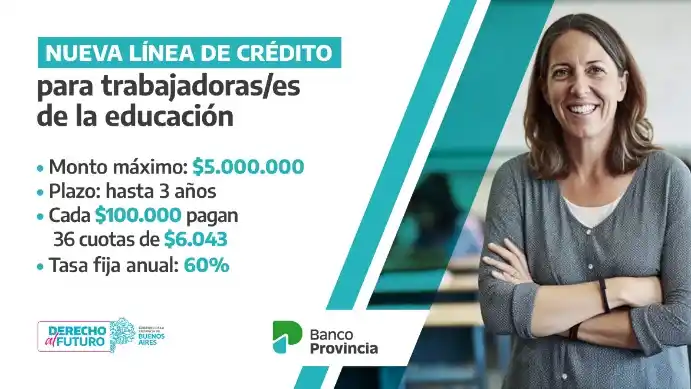 La propuesta de créditos a sola firma alcanzará a todo el personal bonaerense que forma parte de las escuelas, ya sean maestros, auxiliares o profesores. Estiman un universo de cerca de 400 mil destinatarios puedan acceder a esta financiación que tiene un monto máximo de cinco millones de pesos. Se podrá gestionar desde el home banking o en las sucursales de manera presencial y es requisito percibir haberes a través del Banco Provincia.