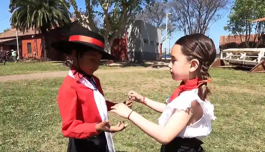 Hacen lo propio en Gobernador Castro los niños Liam Leiva y Triana Georgeos, dirigidos por Alejandro Georgeos, de la agrupación folclórica LU.MA.RO. Juntos bailan Lindo adorno pa‘ mi apero del formoseño Domingo Maza Girón.