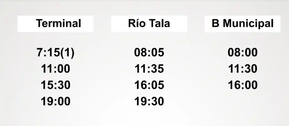 El servicio de transporte público será gratuito entre las 8.00 y las 18.00 desde y hacia Santa Lucía y Pueblo Doyle, Gobernador Castro, Río Tala y Vuelta de Obligado. En cada caso, los horarios vigentes serán los de los días sábado.
