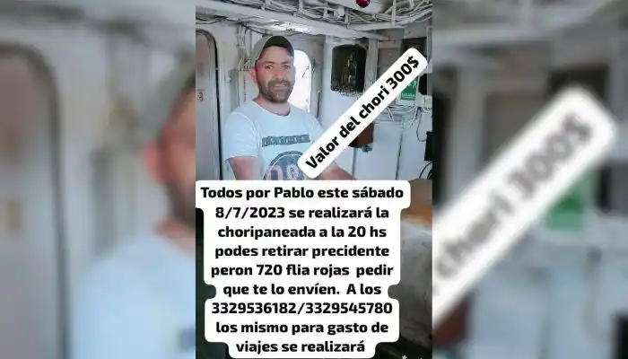 La familia del motociclista accidentado, Pablo Cáceres, difundió que harán una choripaneada este sábado a las 20.00 para ayudar a su mujer e hijos a solventar gastos. Aquellos interesados en colaborar, podrán acercarse a Perón 790, el valor del choripán es de $300. También se pueden comunicar a los siguientes números: 3329 536182, 3329545780 y al 3329 563780.
