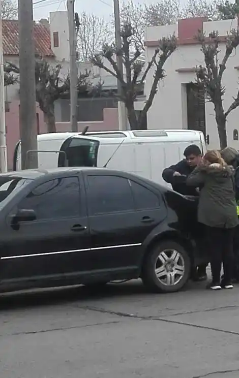 Una camioneta de reparto volcó este sábado, pasadas las 15.00, tras ser embestida por un automóvil en la intersección de las calles Honorio Pueyrredón y Almafuerte.