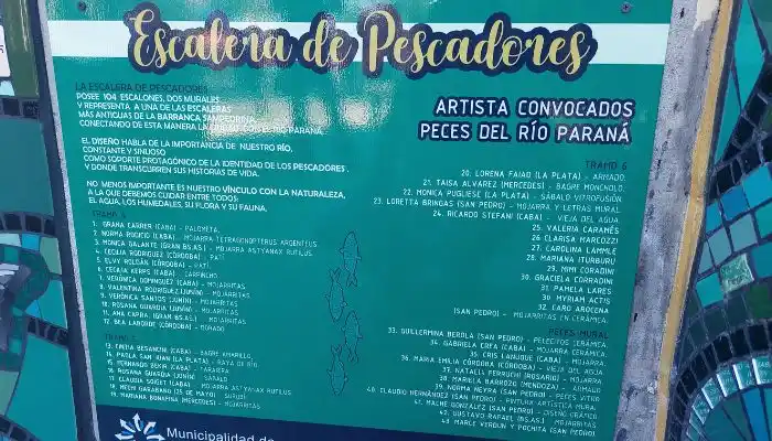 El sábado 17 a las 15.00, será la inauguración de la segunda etapa, que comprende 45 nuevos escalones intervenidos con venecitas y piezas artísticas. En tonos azules, verdes y amarillos, representan un paisaje del río junto a sus actores.
