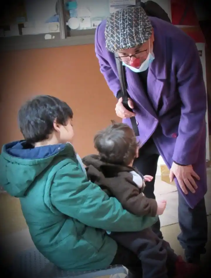 Se abre la puerta y entra un payaso. Tiene nariz roja, un sobretodo violeta, y unos zapatos enormes. Es un instante. La habitación del hospital, en internación o pediatría, se transforma en un escenario para el clown Santiago Altolaguirre, que recorre los pasillos del Emilio Ruffa cada martes y jueves buscando provocar una sonrisa o una mirada: todo gesto, aunque sea mínimo, indica que algo cambia y que comienza el juego.
