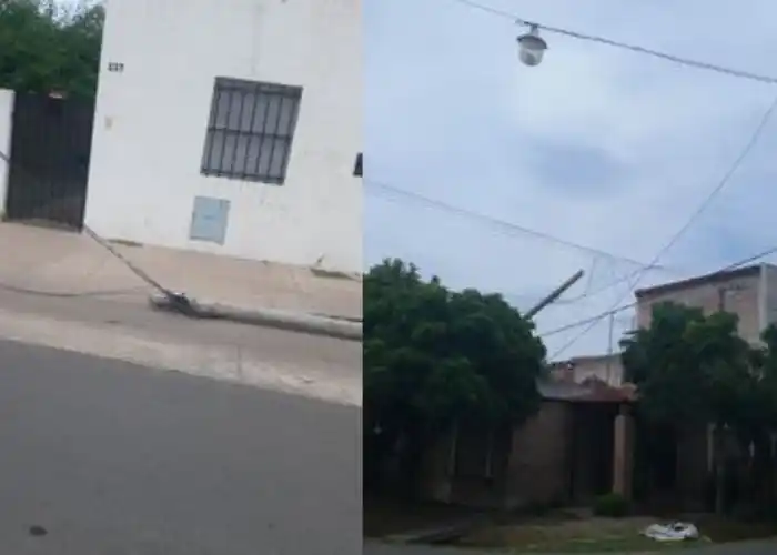 Una oyente reportó: “Pasó un camión y se enganchó con los cables. Así están los postes en Irlanda y Rivadavia. Hasta el momento que estuve, vi al personal municipal”.