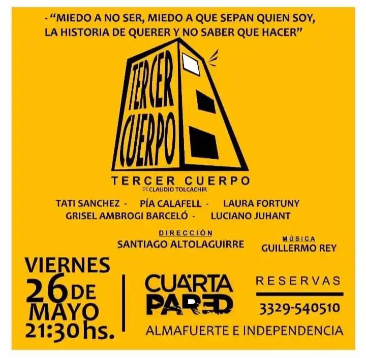 Este viernes 26 de mayo la Sala Cuarta Pared presenta Tercer Cuerpo, la multipremiada obra del reconocido Claudio Tolcachir que se propuso poner en escena el teatrista local Santiago Altolaguirre y que luego de su estreno en 2021 tuvo un impasse obligado por cuestiones personales del elenco.