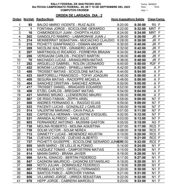 Rally Federal en San Pedro: Los resultados del sábado y la competencia del domingo