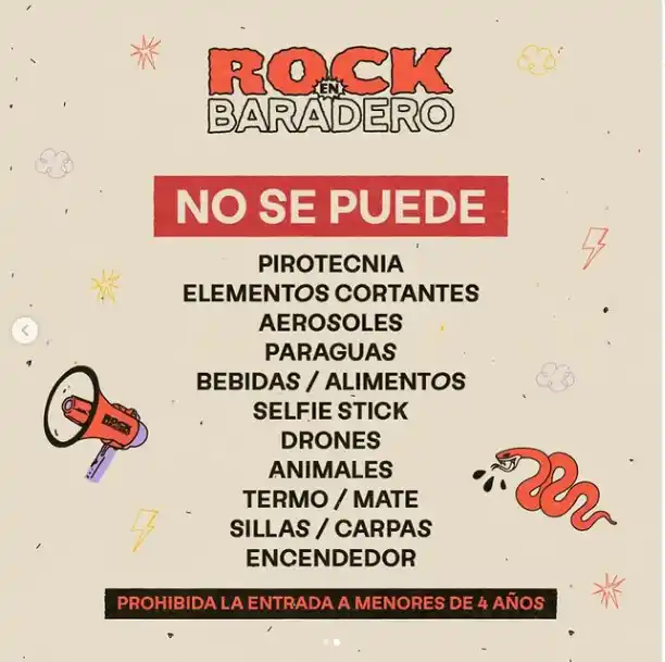 Un día antes del evento, los organizadores anunciaron los elementos con los que se podrán ingresar y aquellos no permitidos.