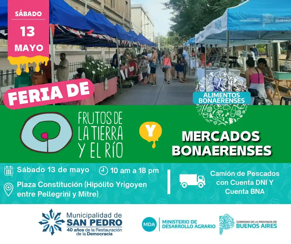 Este sábado habrá una nueva edición conjunta del programa Mercado Bonaerenses y la feria Frutos de la Tierra y el Río en la plaza Constitución, de 10.00 a 18.00.