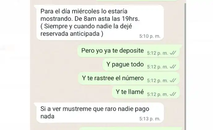Al igual que una familia que denunció días atrás la misma maniobra, la joven detalló que se contactó por WhatsApp con un sujeto que ofrecía un departamento en alquiler en 25 de Mayo al 1000, en San Pedro. El supuesto propietario le solicitó una reserva a su cuenta de Mercado Pago y la chica accedió.