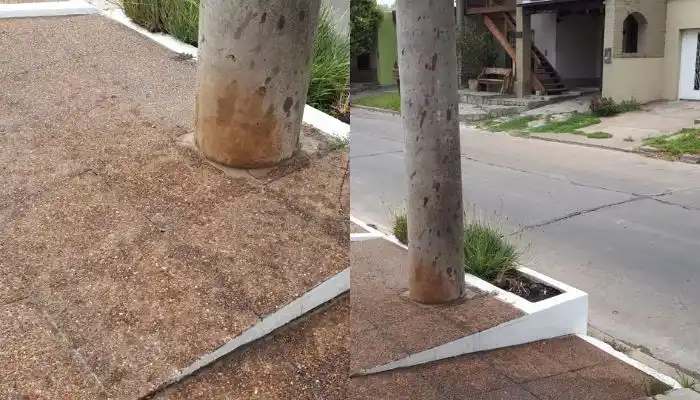 “Ya no sé qué hacer, no sé si podrán mandar un móvil. Porque, la verdad, vergüenza da”, pidió Oscar. Radio Cuarentena se presentó para constatar el derrame proveniente del transformador y las salpicaduras esparcidas a los costados.