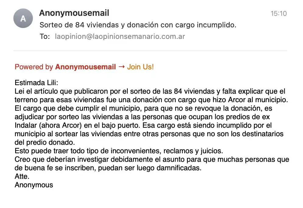 El archivo de La Opinión muestra claramente que al menos un funcionario de larga trayectoria en su área sabía perfectamente que la inscripción de postulantes violaba disposiciones expresas para la utilización de esos terrenos.