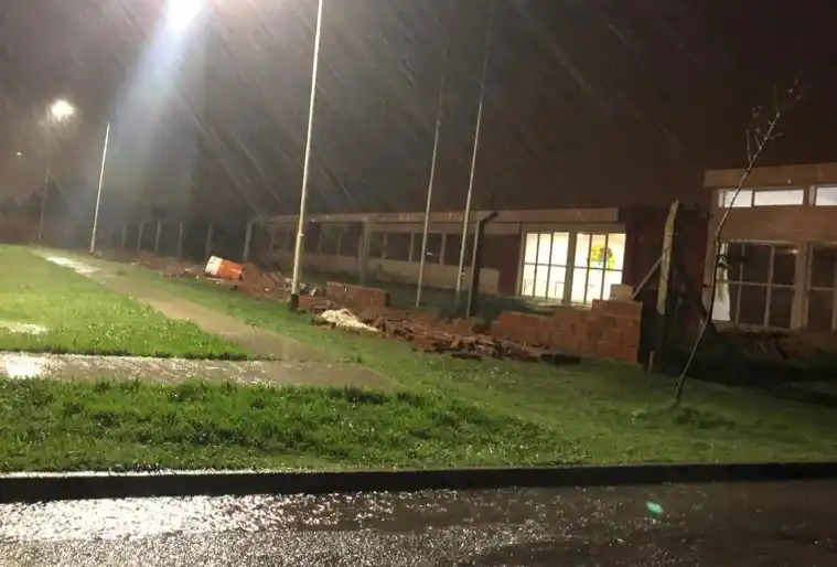 También el tapial de la Secundaria 13, conocida como la escuela de Banfield se derrumbó producto de las ráfagas de viento. Así lo hicieron saber los vecinos a La Opinión, que enviaron la foto que aquí se reproduce.
