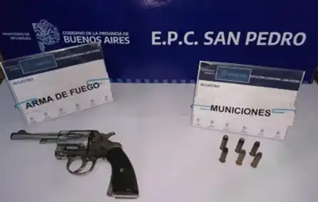 En el medio de la discusión, el detenido sacó un revólver calibre 38 largo marca Colt y amenazó al motociclista. La intervención policial permitió secuestrar el arma, que tenía seis municiones colocadas en el tambor.