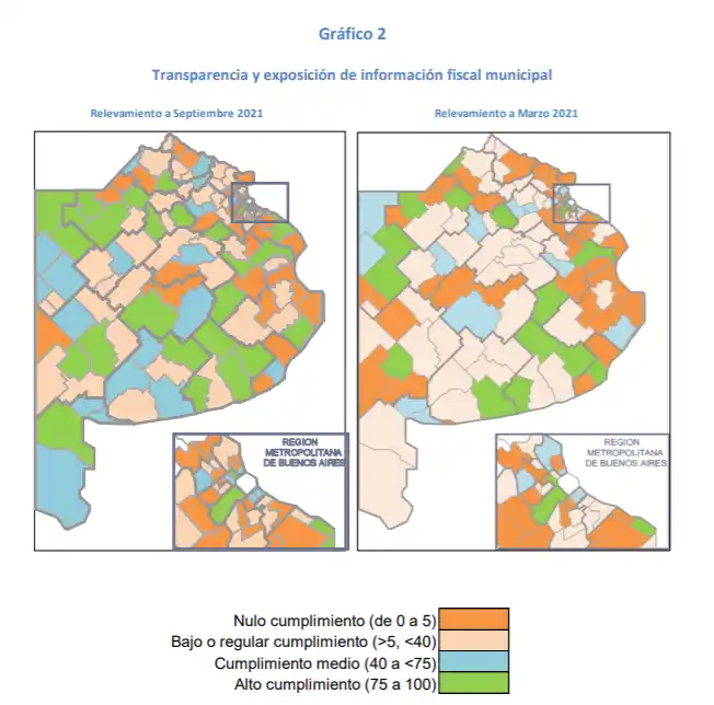 “Más del 61 por ciento de los municipios de la provincia de Buenos Aires tienen un índice de transparencia y visibilidad bajo, regular o nulo, lo cual demarca el intenso trabajo a realizar para cumplir con las disposiciones de la normativa de Responsabilidad Fiscal”, advierte el informe.