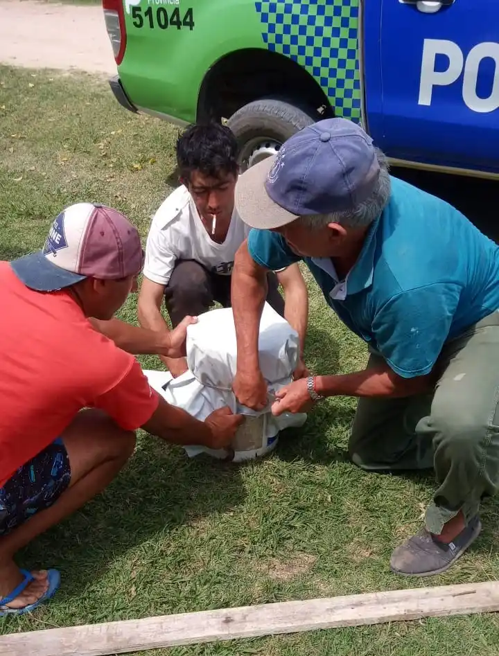A su vez, el padre de Daniela también se sumó a la ayuda, la enlazó y ahí la pudieron rescatar. La ubicaron en un balde, el patrullero la trasladó hasta la casa del delegado donde esperaban recibir las órdenes para ver si había que liberarla y en qué sitio.